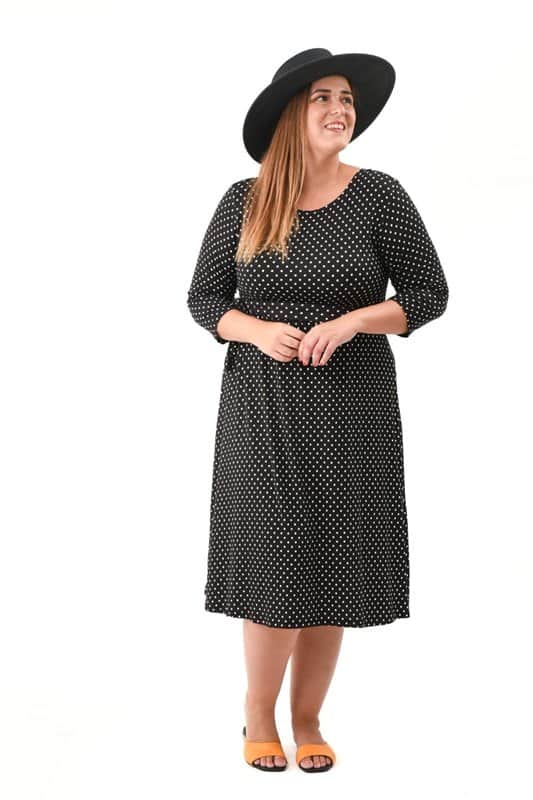 שמלת גלביה מקסי בגזרה ישרה.