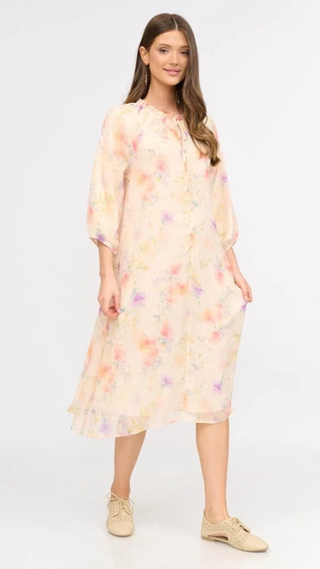 ההדפס הפרחוני משתלב על גבי רקע שמנת, ויוצר מראה עדין עם טאץ’ של רומנטיקה מודרנית.