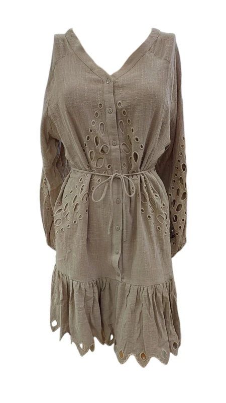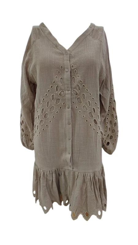 שמלה בגזרת ישרה ומשוחררת עם פפלום למטה ורקמה מהממת.