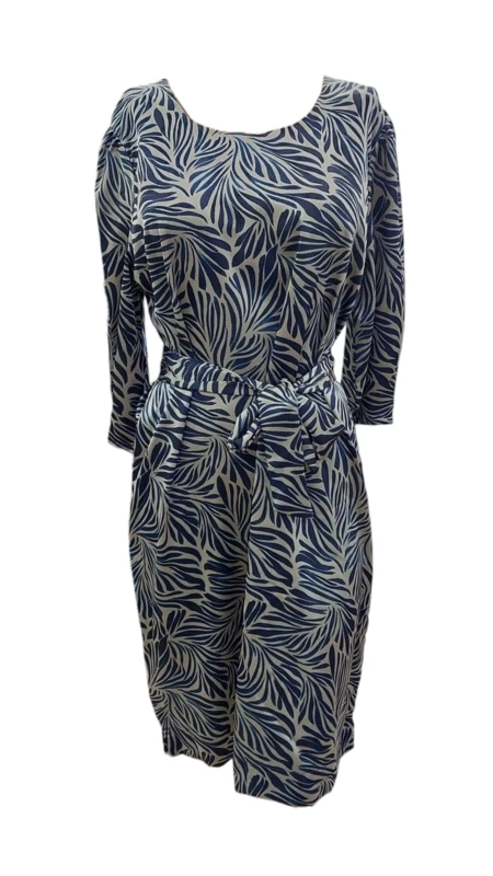 שמלה חגיגית מבד סאטן מודפס, בגזרה ישרה, עם ביטנה