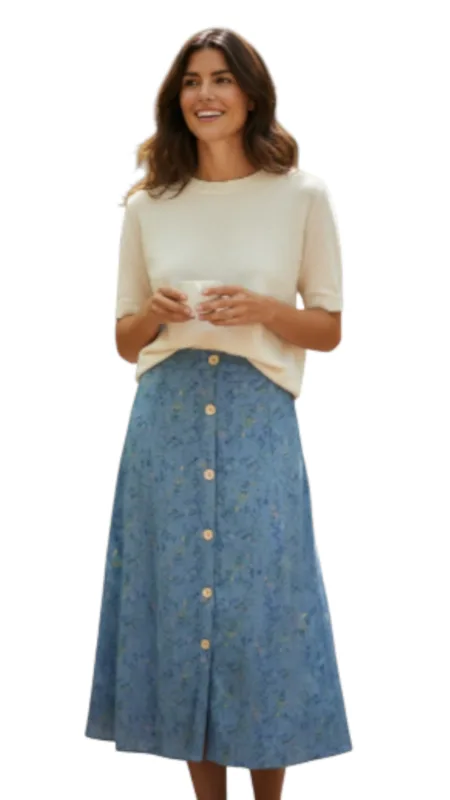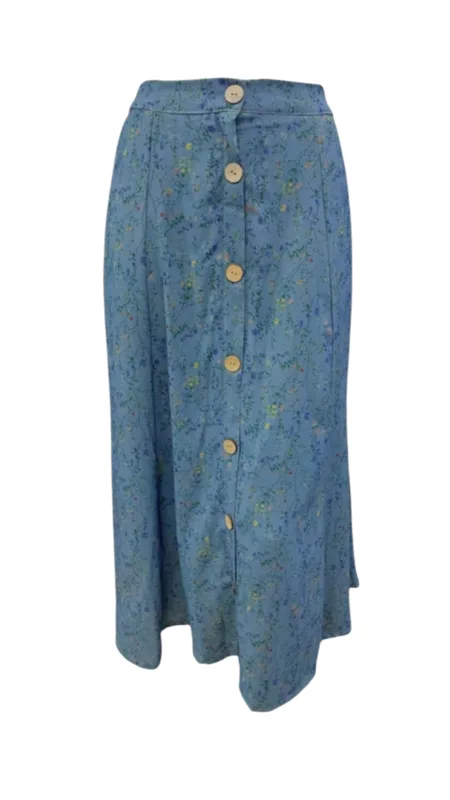 חצאית מבד דק עם ביטנה. גומי מאחורה וכפתורים לקישוט.