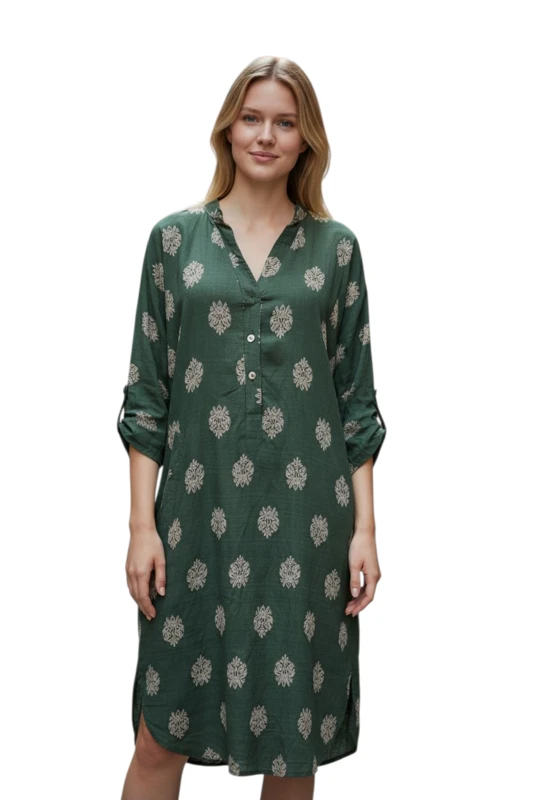 שמלת גלביה עם כפתורים מקדימה וכיסים, שרוולים בגזרת עטלף