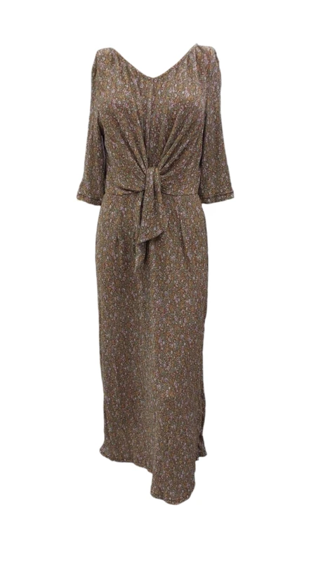 שמלה מקסי פרחונית מפתח וי וקשירה מחמיאה מקדימה.