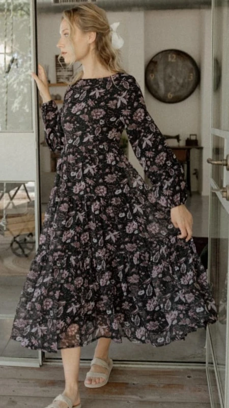 שמלת מקסי עשויה בד שיפון עם הדפס פרחים רומנטי.