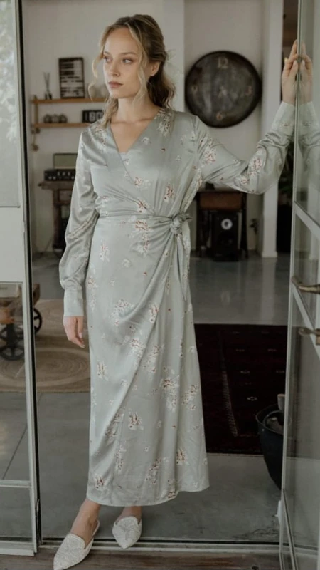 שמלת מעטפת אלגנטית עם הדפס פרחוני קסום