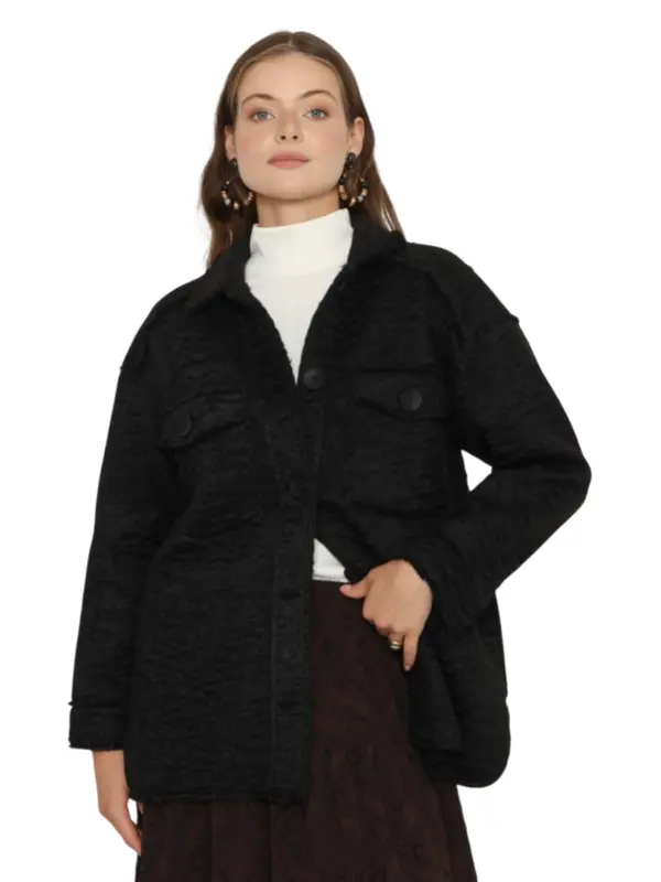 ג’קט לבד ארוך במגע כבש רך ונעים, מעניק חמימות ונוחות לצד מראה אלגנטי ומודרני – מושלם לעונות המעבר ולחורף.