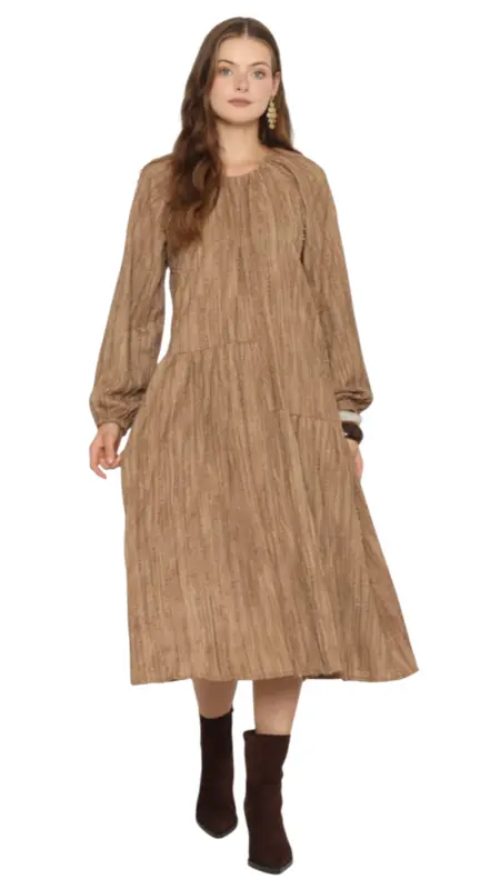 שמלת לוז בגזרה אסימטרית ייחודית, עשויה בד קליל ונעים, מעניקה מראה מודרני ומחמיא עם טאץ’ אופנתי ונשי.