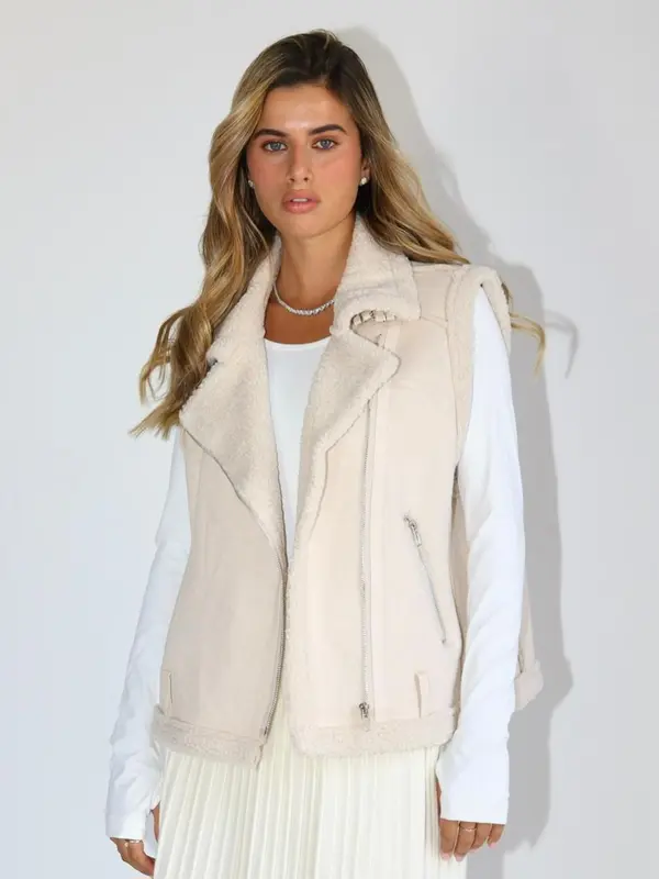 אפודה עם צמר נעים מבפנים, ובד דמוי עור מבחוץ, עם כיסים ורוכסן.