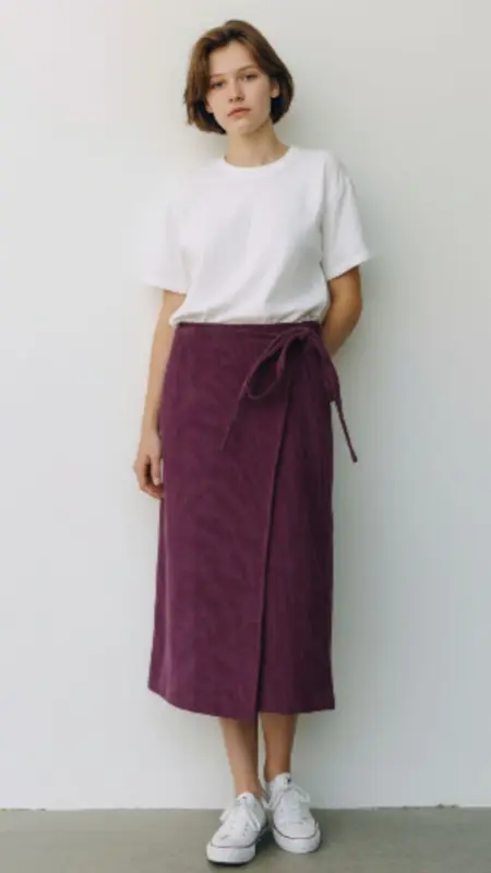 חצאית דמוי מעטפת עם קשירה בצד, מבד קורדרוי רך ונעים