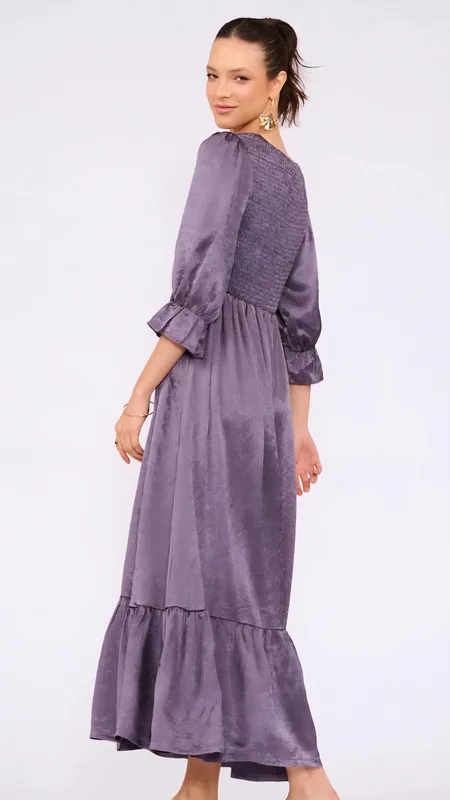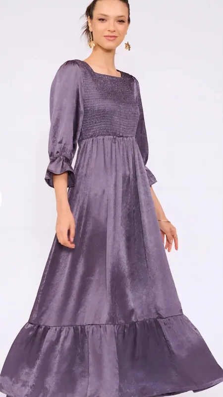 שמלת סאטן חגיגית בעלת ברק עדין המעניק לה מראה יוקרתי ומלא נוכחות