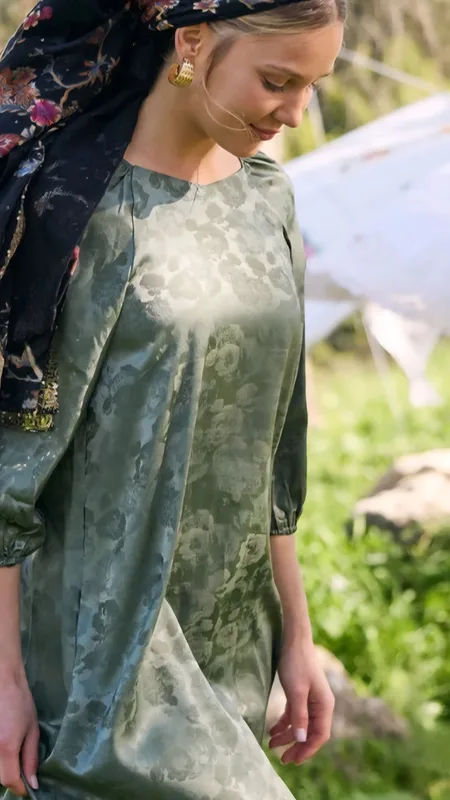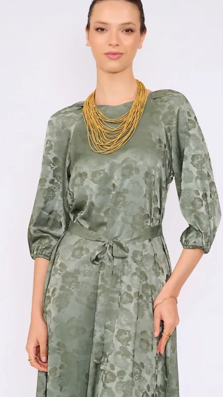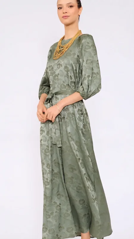 שמלת סאטן מקסי המשלבת טקסטורת פרחים עדינה
