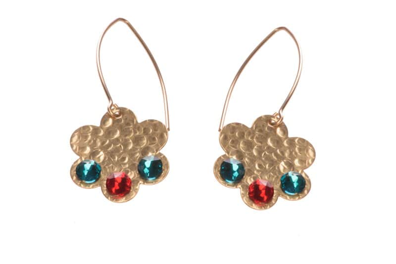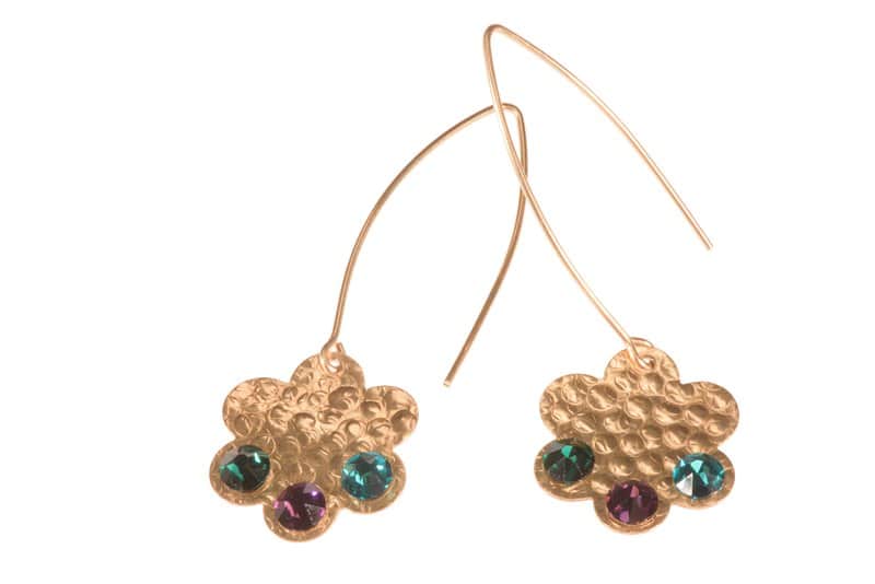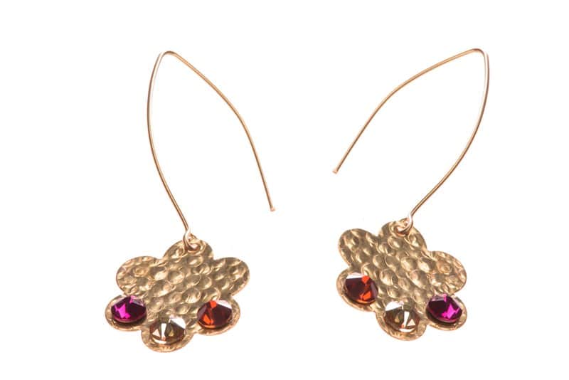 עגילי גולדפילד בצורת פרח, משובץ בקריסטלי סברובסקי
